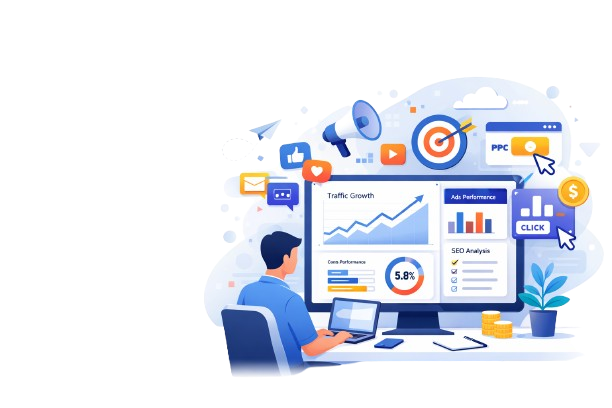 We help businesses scale faster with result-driven digital marketing, powerful websites, and AI-powered automation systems. From strategy to execution, we create complete growth ecosystems that increase traffic, generate quality leads, and boost revenue consistently.